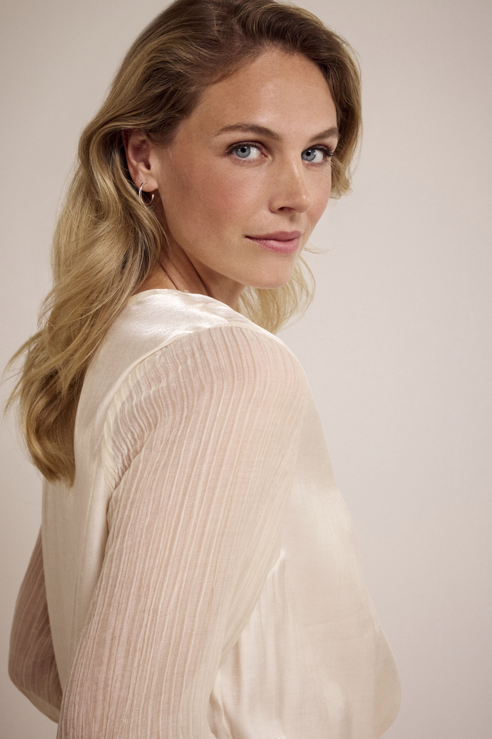 Draag los op een jeans voor een relaxte uitstraling, of gestyled onder een blazer voor een meer geklede look. Deze top biedt de perfecte balans tussen comfort, detail en tijdloze stijl.