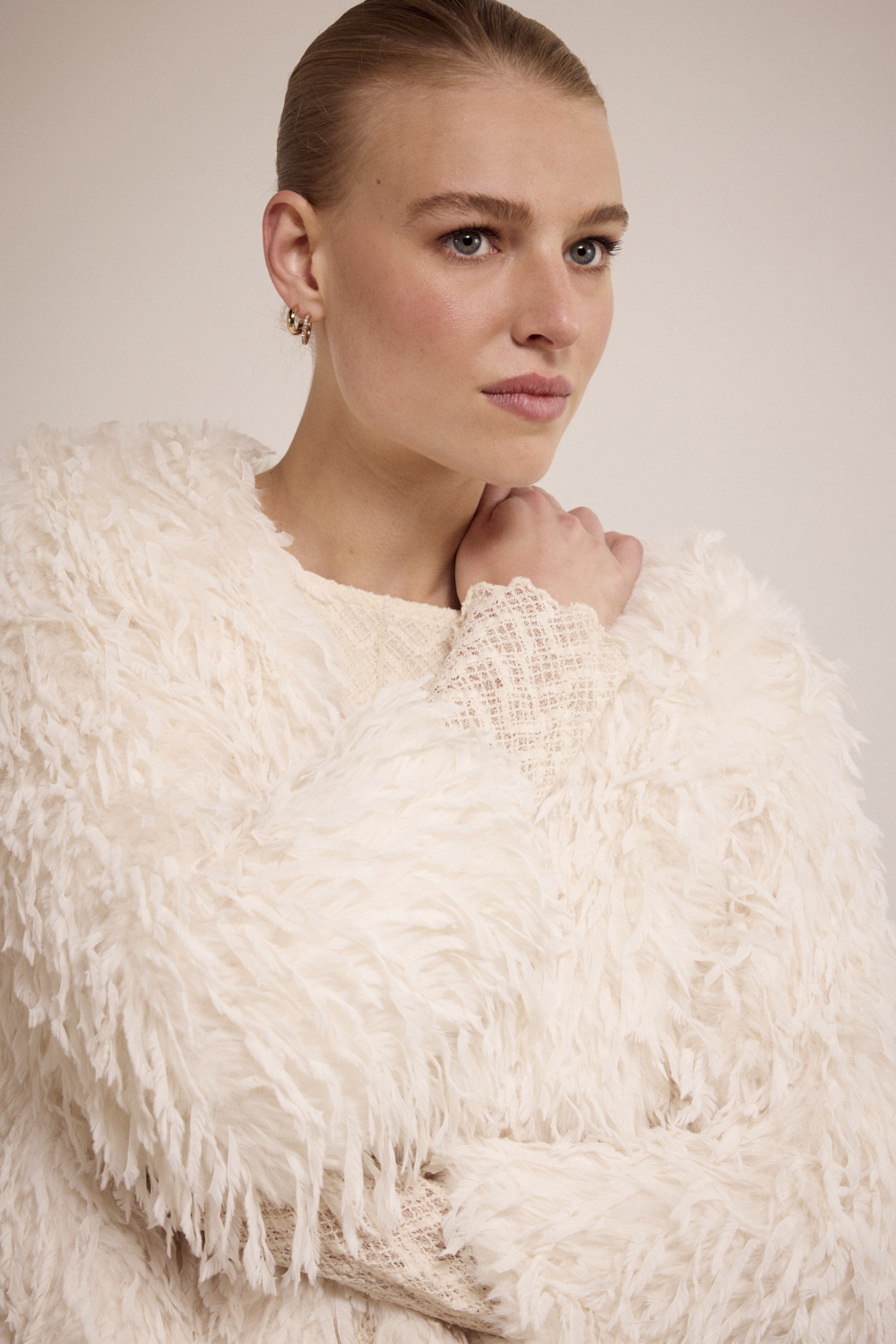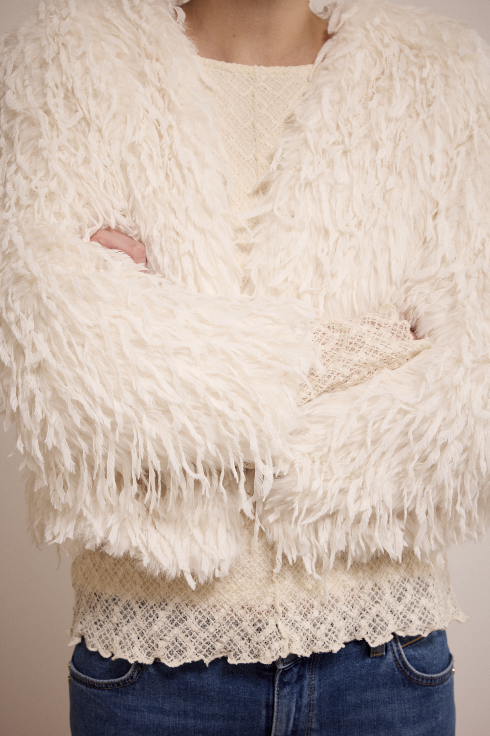 Of je het nu draagt naar een avond uit, een feestje of als statement piece overdag: dit jasje voegt direct flair en textuur toe aan je outfit. Stoer, speels en onweerstaanbaar zacht.