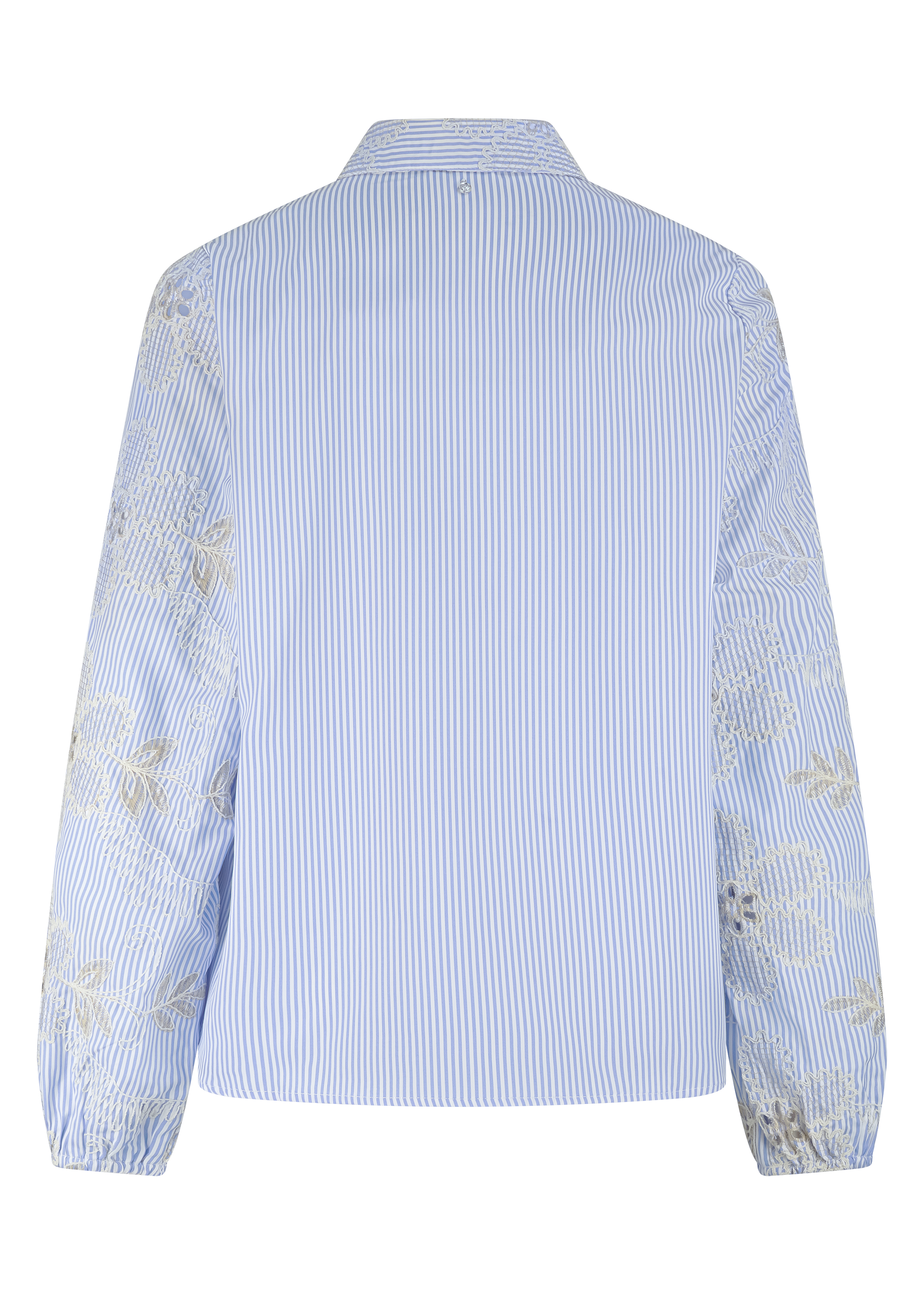 De Flower Embroidery Blouse straalt een frisse en verfijnde elegantie uit en is een echte eyecatcher in elke garderobe. Deze blouse is vervaardigd uit 100% polyester en voelt licht en comfortabel aan, ideaal voor dagelijks draagcomfort met een stijlvolle uitstraling. Het fijne streepdessin vormt een speelse basis voor het rijke bloemenborduursel, dat het ontwerp een luxe en ambachtelijke touch geeft. De klassieke kraag en knoopsluiting zorgen voor een tijdloos silhouet, terwijl de lange mouwen met elastische boorden een subtiel vrouwelijk accent toevoegen. Uitgevoerd in de kleur Breezy Blue ademt deze blouse een frisse, zomerse sfeer en laat hij zich moeiteloos combineren. Draag de Flower Embroidery Blouse nonchalant op een jeans voor een casual-chique look of combineer met een pantalon of rok voor een meer geklede outfit. Een veelzijdige blouse die elegantie en draagbaarheid perfect samenbrengt.