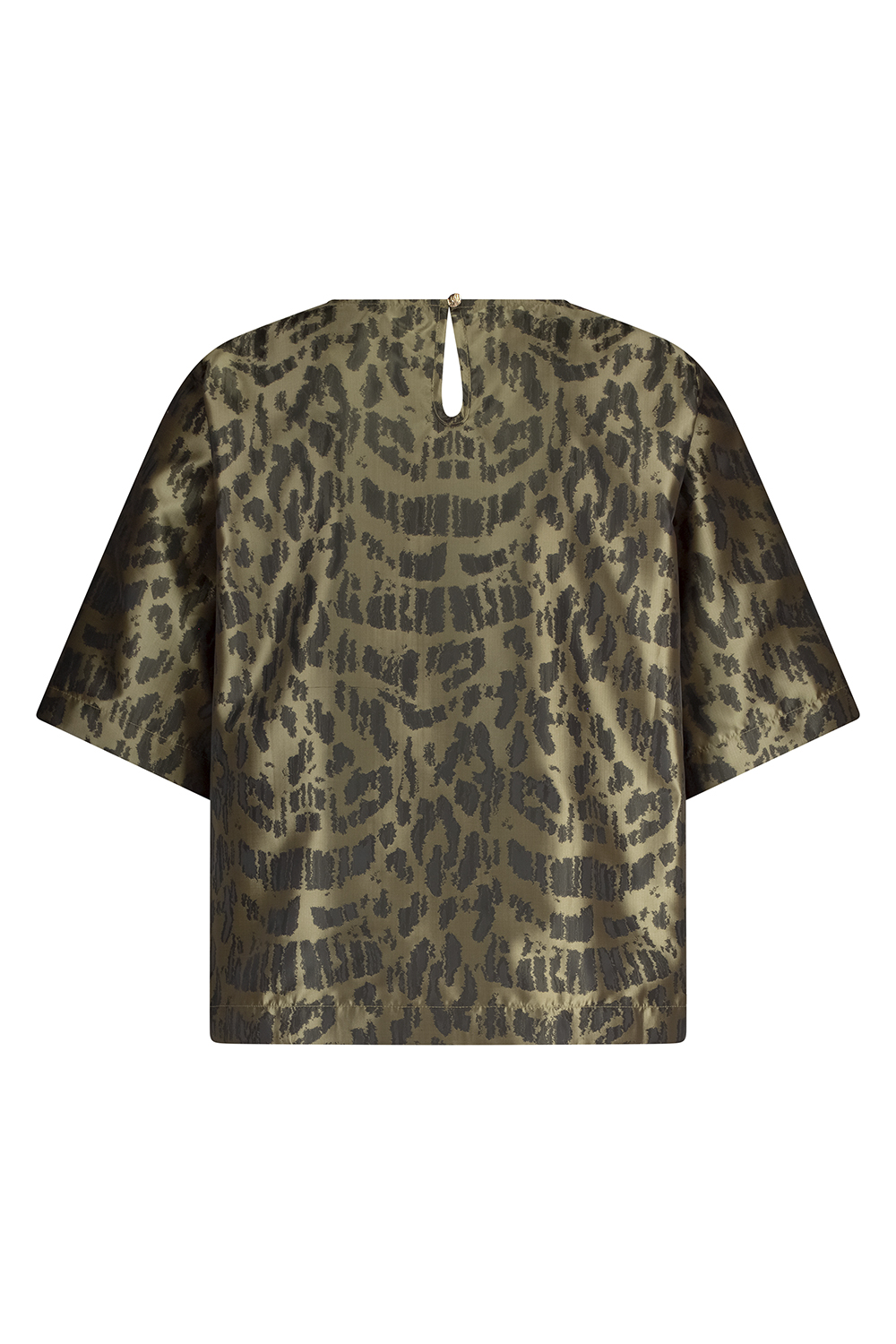De Jacquard Top is een verfijnd item met een rijke textuur en een stijlvolle uitstraling. Gemaakt van 100% polyester, heeft deze top een licht gestructureerde feel dankzij het jacquardweefsel, dat zorgt voor diepte en een subtiele glans.