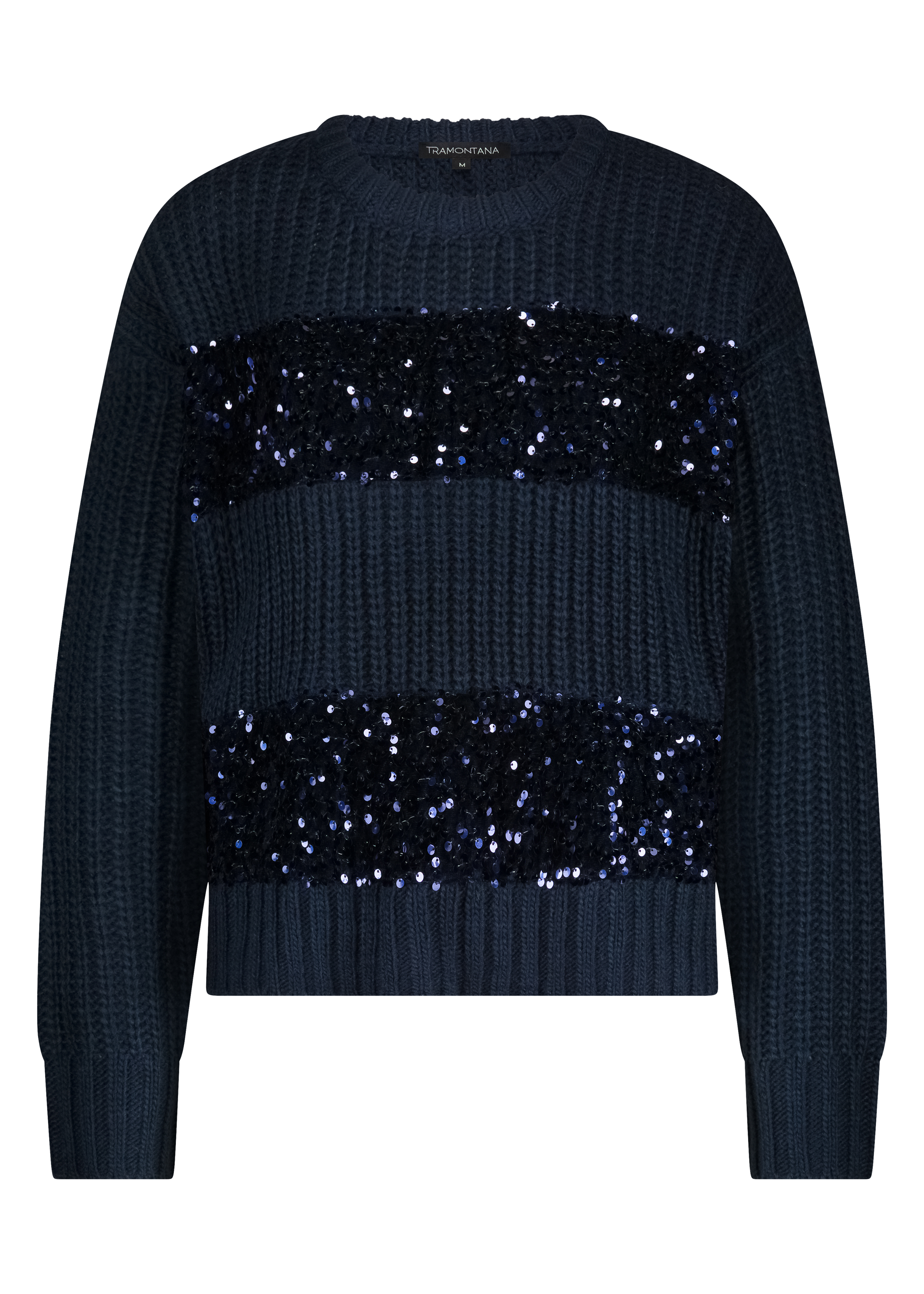 De Jumper Sequin Stripes is een verfijnde en glamoureuze keuze voor je wintergarderobe. Gemaakt van 80% polyacrylonitril en 20% wol, biedt deze trui zowel een luxe uitstraling als een comfortabele pasvorm. De diepe midnight kleur zorgt voor een tijdloze, elegante basis die gemakkelijk te combineren is met verschillende outfits.