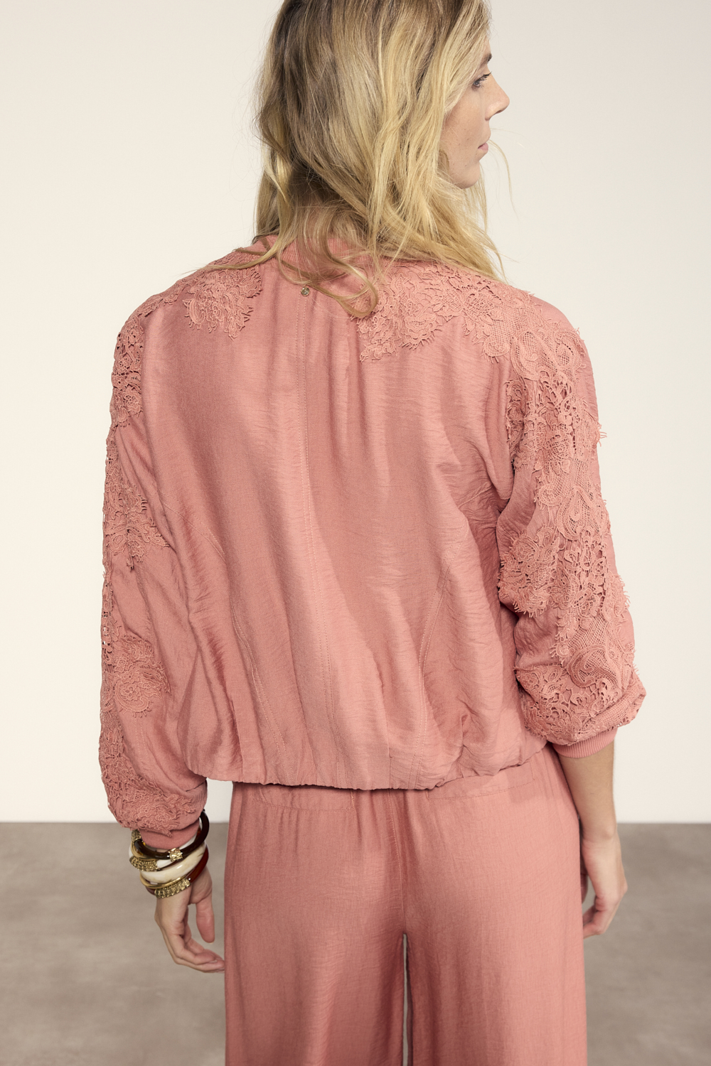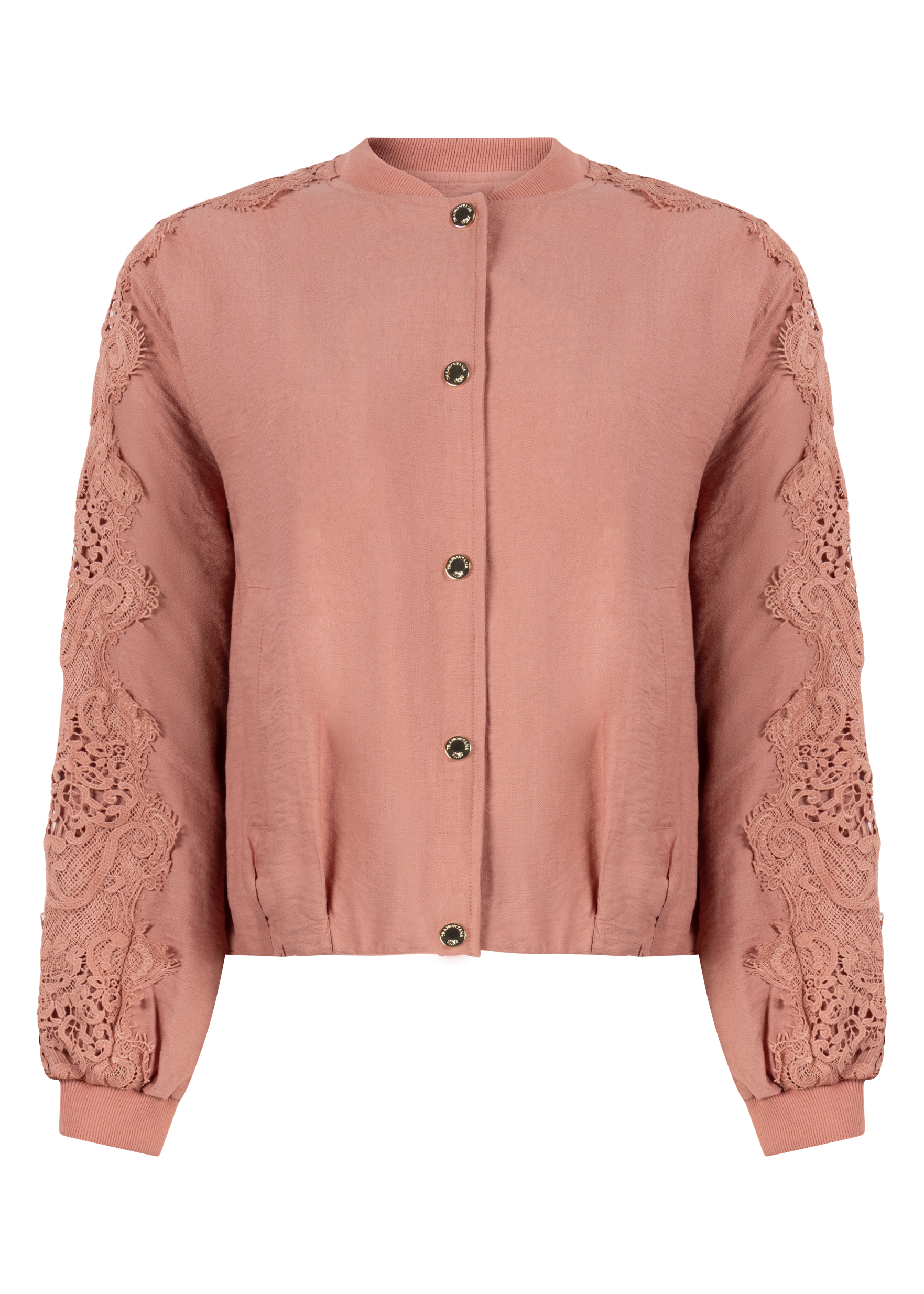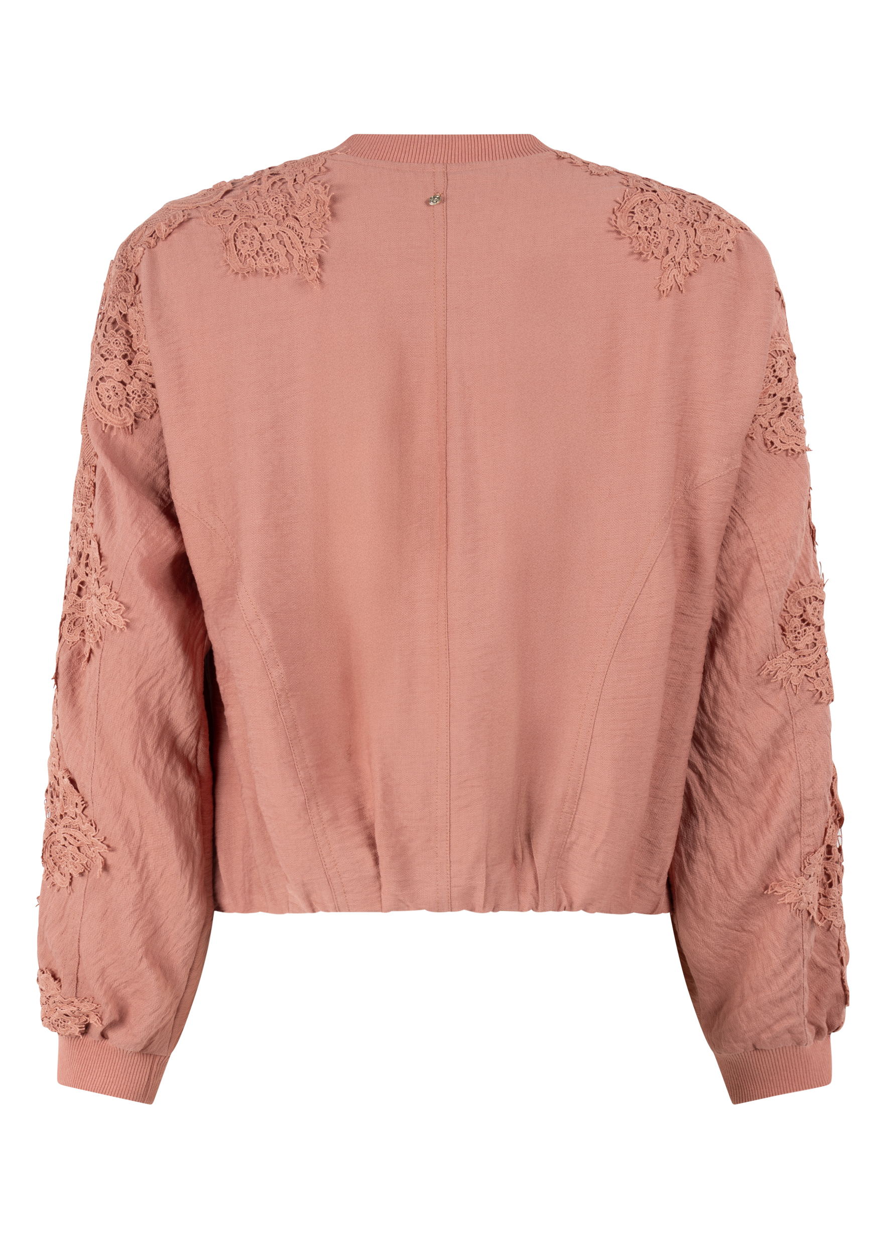 De Lace Detailed Jacket is een elegante en verfijnde jacket met een vrouwelijke uitstraling en een luxe afwerking. Deze jacket is vervaardigd uit een comfortabele stofmix van 80% viscose en 20% polyamide, wat zorgt voor een licht draaggevoel, een soepele valling en een subtiel luxe uitstraling. De rijke lace details geven het ontwerp een romantisch en stijlvol karakter, terwijl de nette belijning zorgt voor een moderne en tijdloze basis. De combinatie van het zachte materiaal en de verfijnde textuur maakt deze jacket zowel chic als veelzijdig. Het silhouet valt elegant om het lichaam en creëert een flatterende pasvorm die geschikt is voor verschillende gelegenheden. Uitgevoerd in de zachte, vrouwelijke kleur Dusty Rose straalt dit jasje een verfijnde en moderne elegantie uit. Draag de Lace Detailed Jacket over een blouse of top met een pantalon voor een elegante look, of combineer met denim voor een moderne, casual-chique outfit. Een stijlvolle jacket die detail, comfort en eigentijdse elegantie moeiteloos samenbrengt.