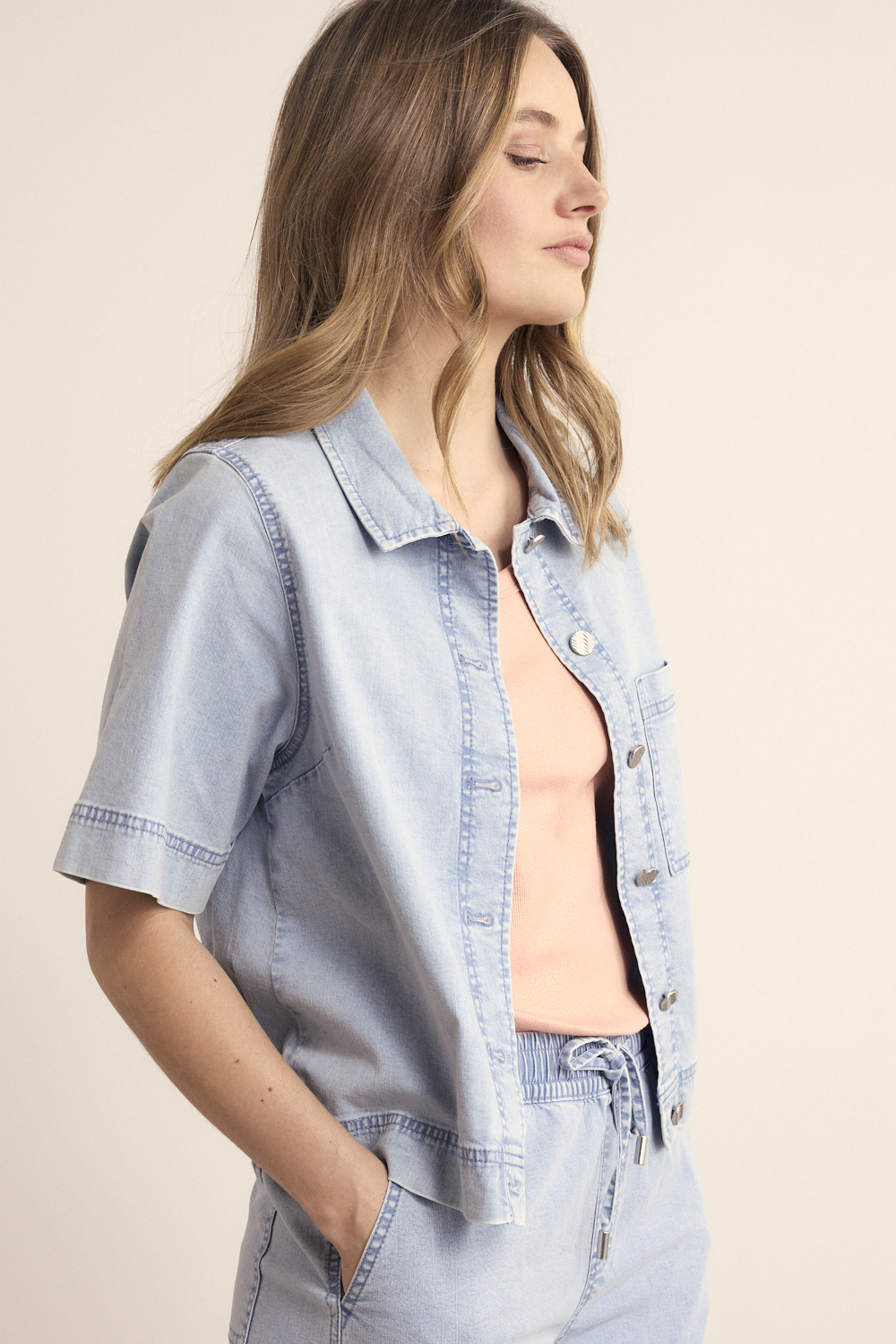 De Lightweight Denim Jacket is een frisse en tijdloze jacket met een moderne uitstraling en een moeiteloos draagbaar silhouet. Deze jacket is vervaardigd uit een soepele denimkwaliteit van 98% katoen en 2% elastaan, wat zorgt voor een ademend draaggevoel, lichte stretch en optimaal comfort. De lichte denimstof geeft het jasje een luchtig karakter en maakt het perfect voor het voorjaar en de zomer. De klassieke kraag, knoopsluiting en borstzakken zorgen voor een herkenbare denimlook, terwijl de ontspannen pasvorm zorgt voor een eigentijdse en vrouwelijke uitstraling. Uitgevoerd in de frisse kleur Light Blue Denim is deze jacket eindeloos te combineren. Draag de Lightweight Denim Jacket als set met de bijpassende trousers voor een moderne denim-on-denim look, of combineer over een jurk, blouse of T-shirt voor een casual-chique outfit. Een veelzijdige denim essential die comfort, eenvoud en moderne stijl moeiteloos samenbrengt.