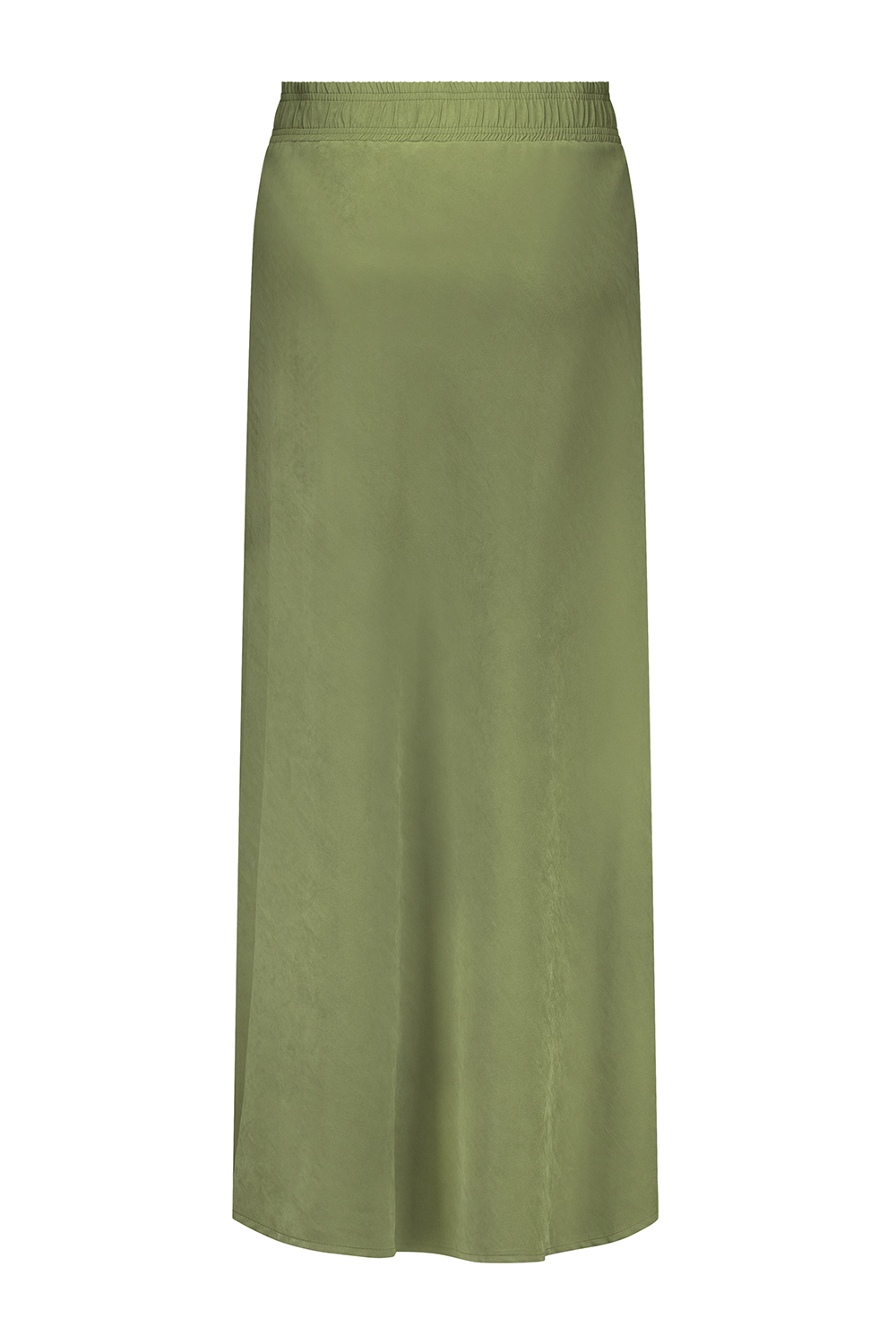 De lengte zorgt voor een vrouwelijke, vloeiende uitstraling, terwijl de zachte mosgroene kleur (Moss) prachtig aansluit bij het herfstpalet. Draag hem met een fijngebreide top, een laarsje en een lange jas voor een gelaagde, stijlvolle look – perfect voor frisse dagen met een modieuze twist.