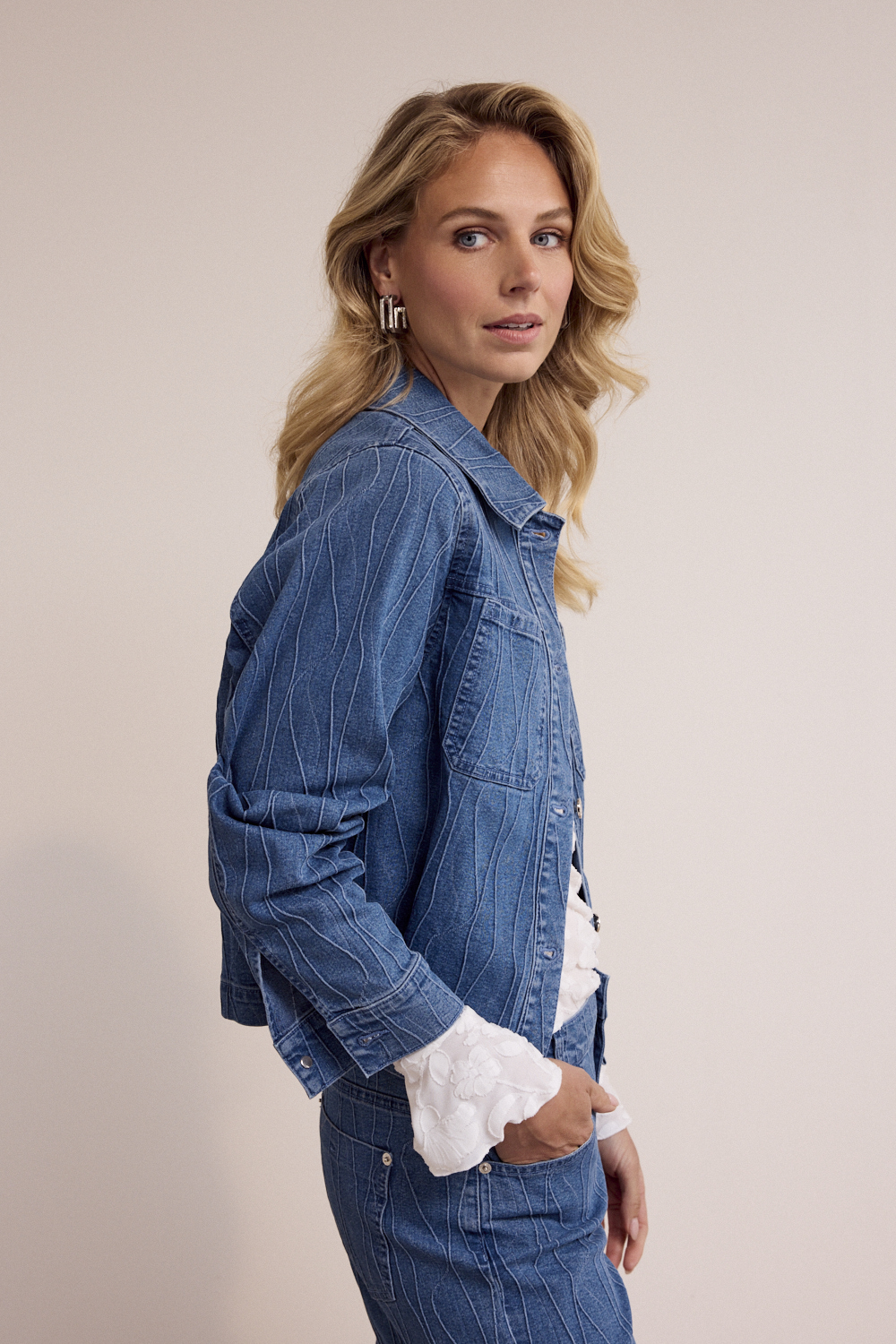 De Pintuck Denim Trousers geven een eigentijdse twist aan een klassiek denim silhouet. Deze broek is uitgevoerd in een comfortabele en stevige stofmix van 65% katoen, 24% polyester, 10% viscose en 1% elastaan, met een voering van 100% katoen. De combinatie van materialen zorgt voor een prettige draagervaring, waarbij de stof zacht aanvoelt en licht meebeweegt met elke beweging. De subtiele pintuck-details over de lengte van de pijpen geven deze broek een verfijnde en modieuze uitstraling. De Blue Denim wassing versterkt het moderne karakter en maakt de broek veelzijdig inzetbaar voor verschillende gelegenheden. Dankzij de rechte, licht wijde pijpen ontstaat een elegant silhouet dat zowel comfortabel als flatterend is. Combineer de Pintuck Denim Trousers met een aansluitende top en loafers voor een stijlvolle, alledaagse look, of draag hem met een oversized blazer voor een meer fashion-forward outfit. Deze denim broek is perfect voor wie houdt van klassieke items met een onderscheidend detail en vormt een sterke basis voor elke garderobe.