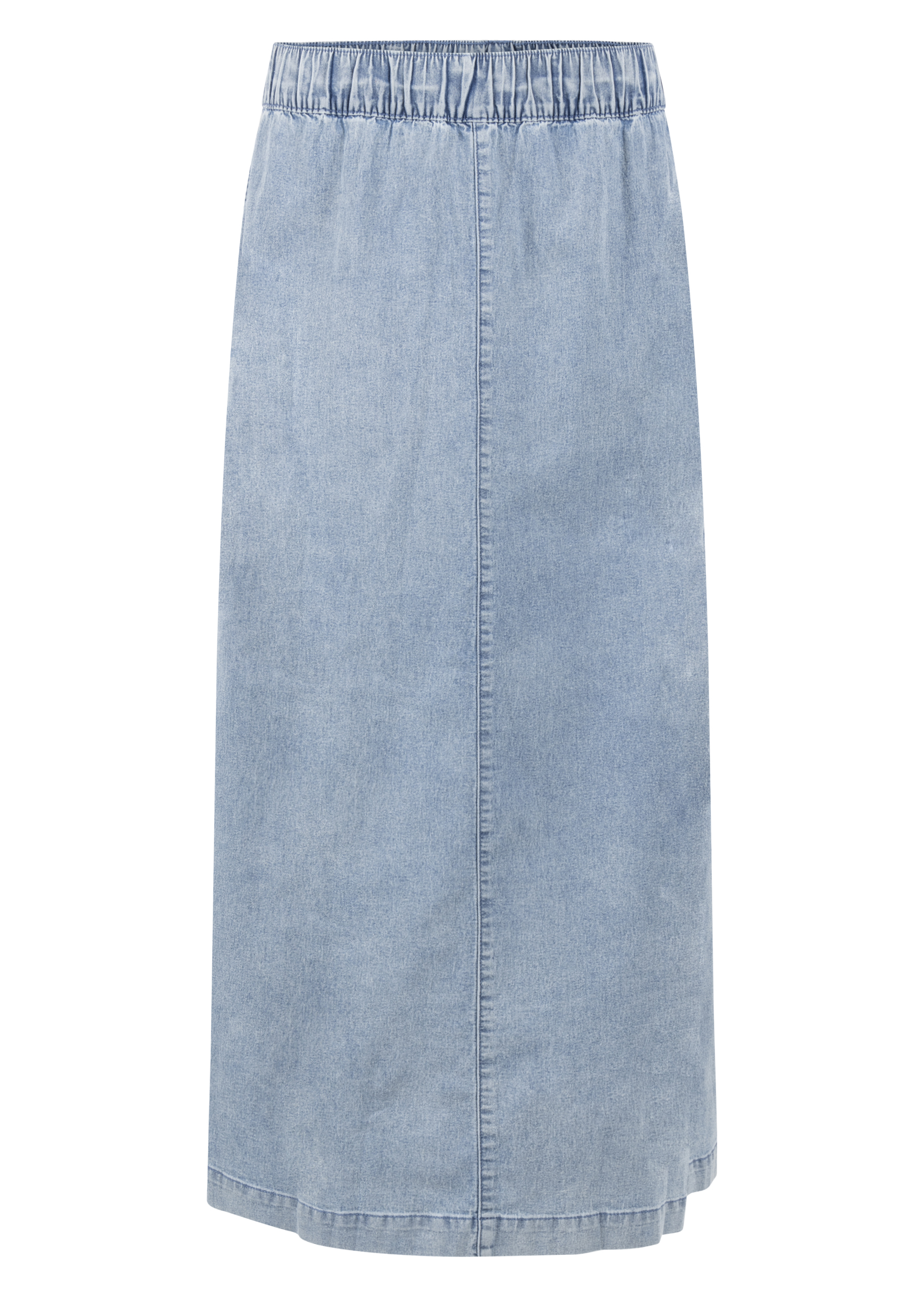 De Stretch Denim Maxi Skirt is een moderne en vrouwelijke rok met een tijdloze uitstraling en een comfortabel silhouet. Deze maxi skirt is vervaardigd uit een soepele denimkwaliteit van 80% katoen, 18% polyester en 2% elastaan, wat zorgt voor een ademend draaggevoel, lichte stretch en een mooie, vormvaste pasvorm. Het denim materiaal geeft het ontwerp een casual en eigentijds karakter, terwijl de stretch zorgt voor extra bewegingsvrijheid en comfort gedurende de dag. De maxi-lengte zorgt voor een elegante en vloeiende valling, terwijl de nette belijning het geheel een moderne en veelzijdige uitstraling geeft. De combinatie van het klassieke denim en het vrouwelijke silhouet maakt deze rok zowel stijlvol als makkelijk te dragen. Uitgevoerd in de kleur Light Blue Denim straalt dit item frisheid en eenvoud uit. Draag de Stretch Denim Maxi Skirt met een blouse of top voor een elegante look, of combineer met een T-shirt of knit voor een moderne, casual-chique outfit. Een veelzijdige rok die comfort, eenvoud en eigentijdse stijl moeiteloos samenbrengt.