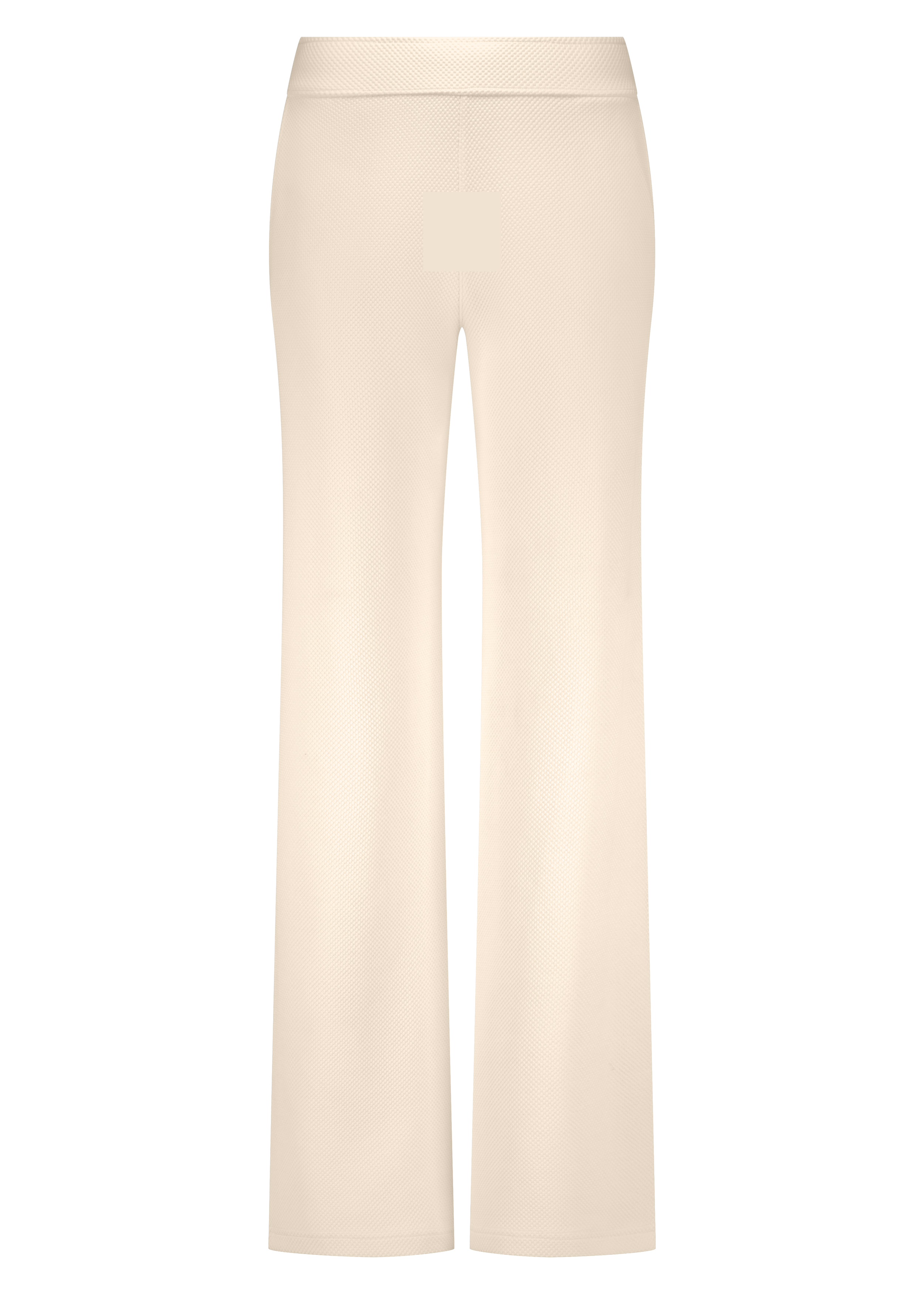 De wijde pijpen zorgen voor een elegant, modern silhouet, terwijl de cleane afwerking het geheel een verzorgde uitstraling geeft. Verkrijgbaar in Moss, Stone en Black – drie tijdloze kleuren die makkelijk te combineren zijn met verschillende stijlen en materialen.