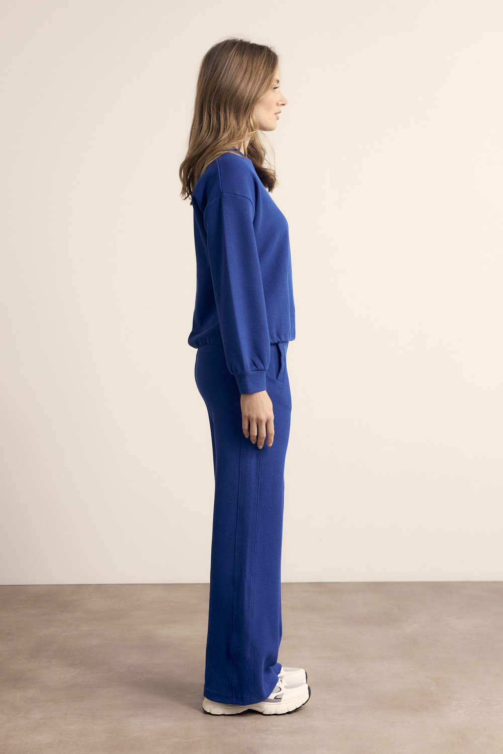 De Structured Wide-Leg Trousers zijn een moderne essential met een krachtige uitstraling en een verfijnd silhouet. Deze broek is vervaardigd uit een hoogwaardige stofmix van 56% katoen, 39% polyester en 5% elastaan, wat zorgt voor een comfortabel draaggevoel, subtiele stretch en een mooie, vormvaste structuur. De verfijnde textuur geeft de broek een luxe uitstraling, terwijl de wide-leg pasvorm zorgt voor een elegant en eigentijds silhouet met een flatterende valling. De elastische tailleband biedt extra comfort en maakt dit item perfect voor zowel casual als geklede looks. Verkrijgbaar in de stijlvolle kleuren Pebble, Ink en Black is deze trousers eindeloos te combineren. Draag met een blouse of blazer voor een sophisticated outfit, of combineer met een knit of top voor een moderne, effortless look. Een veelzijdige broek die comfort, structuur en tijdloze elegantie moeiteloos samenbrengt.