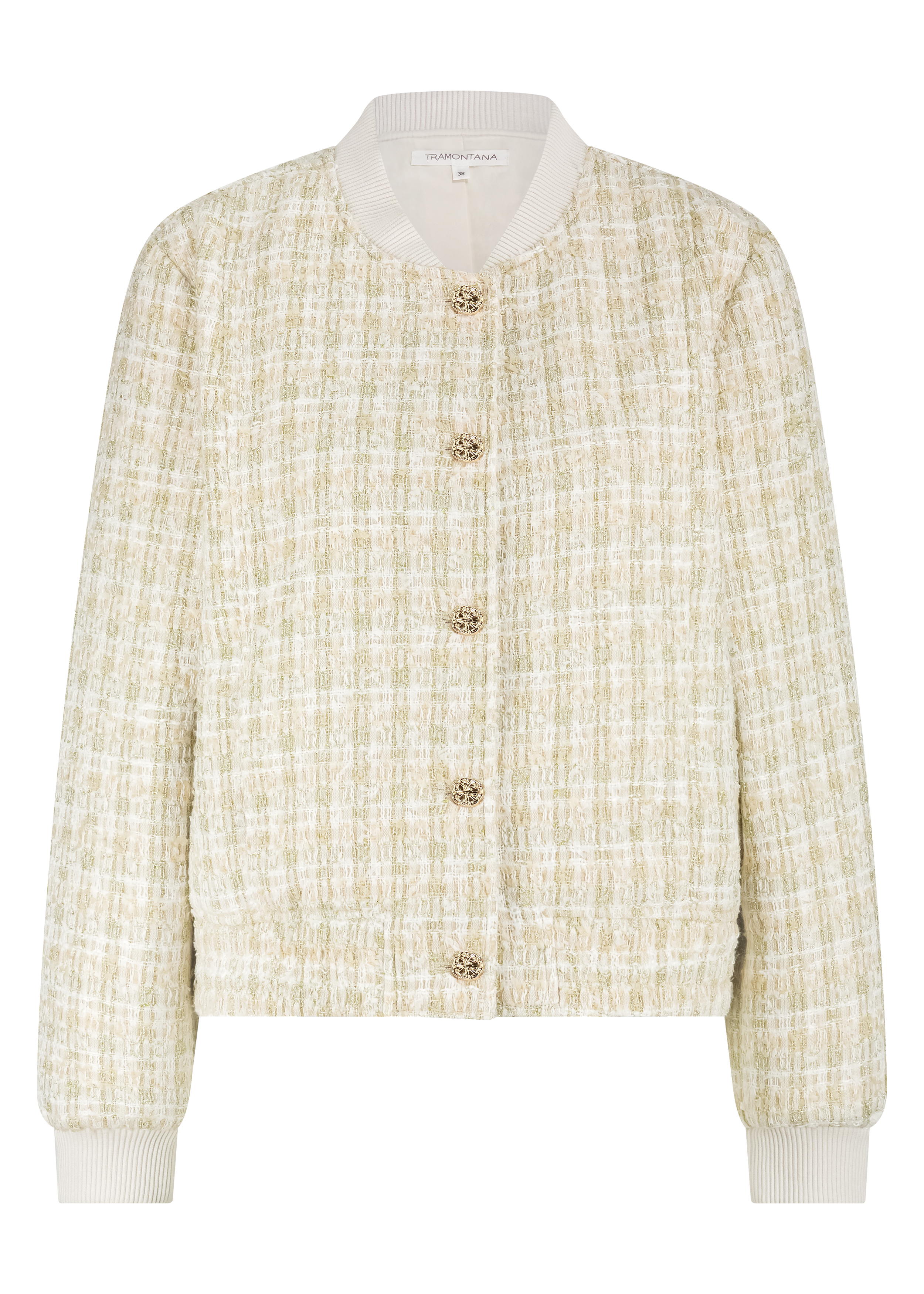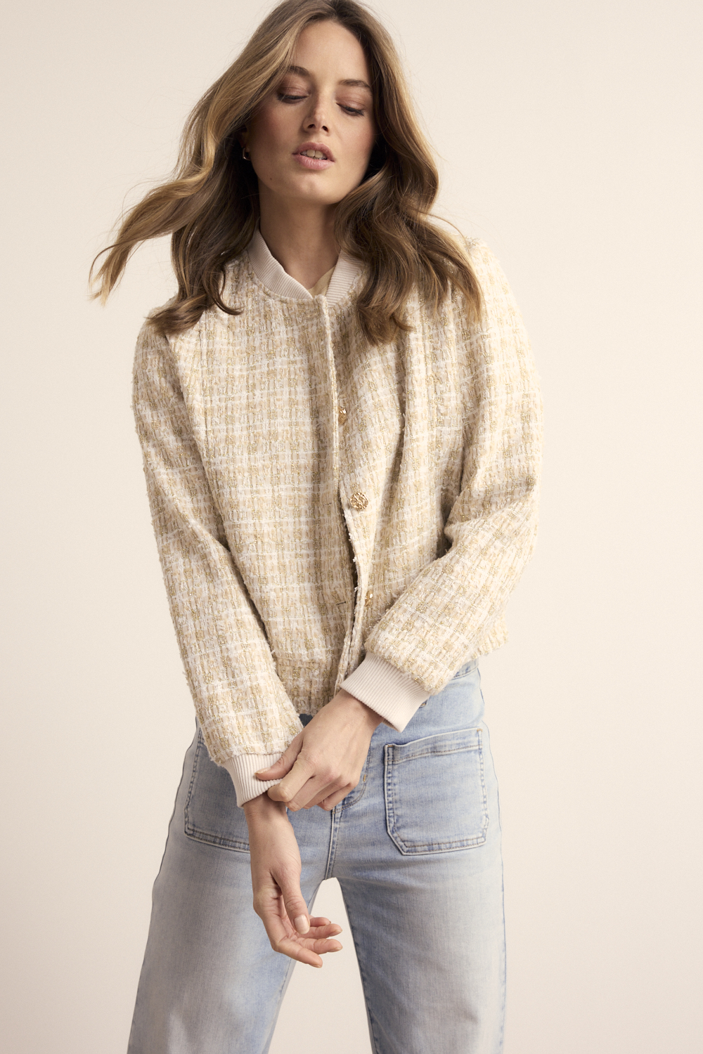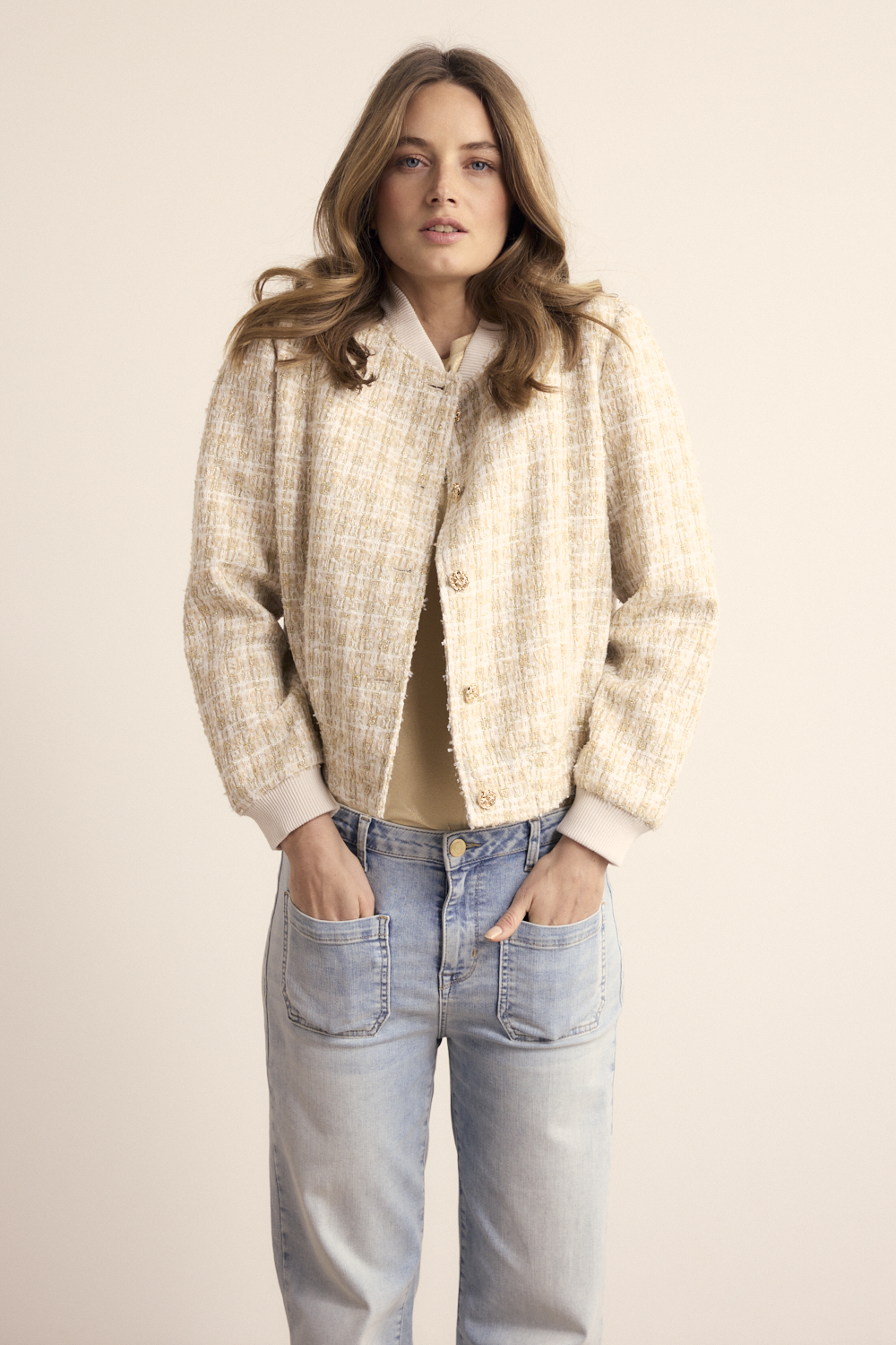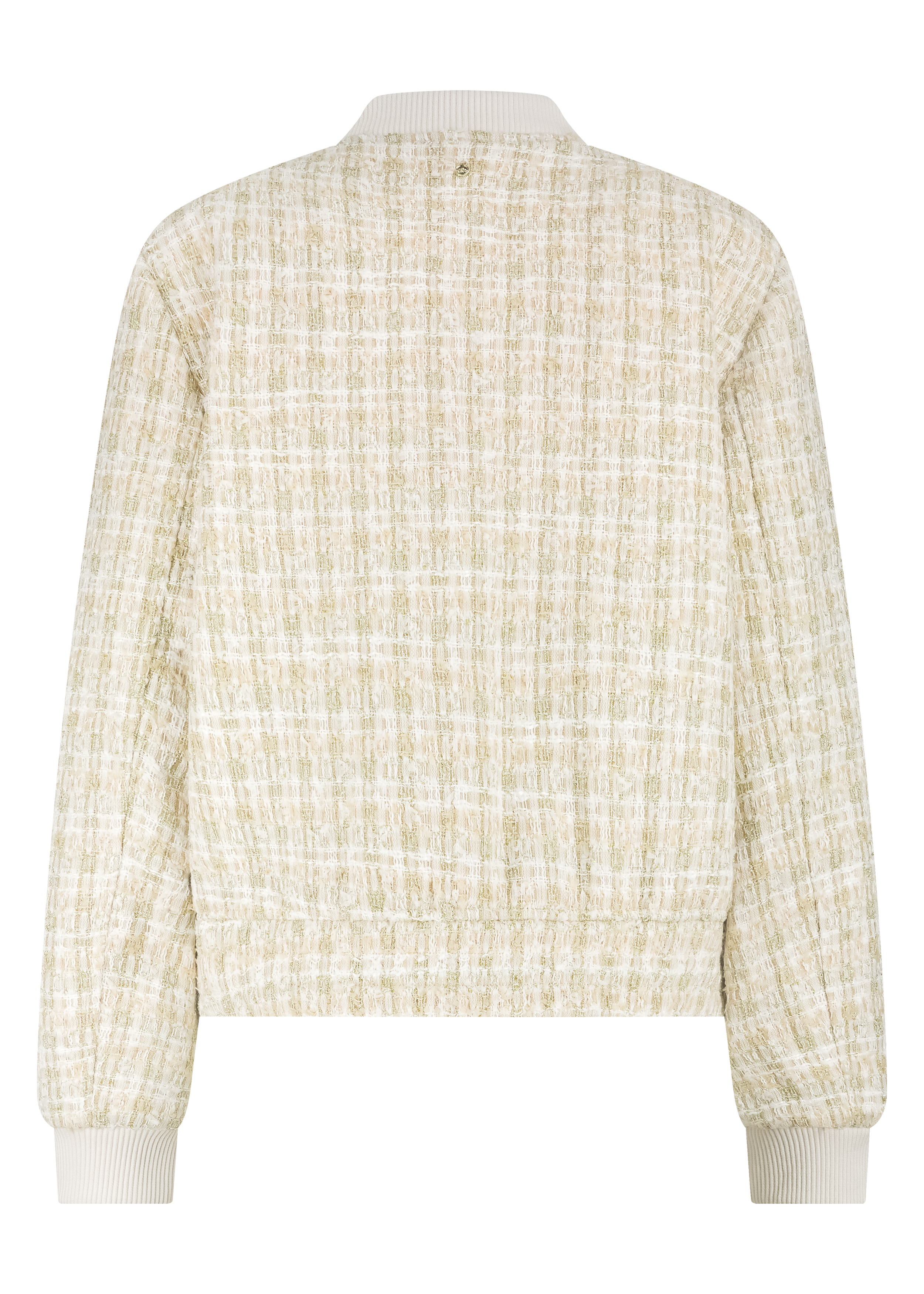 De Tweed Bomber Jacket is een moderne en verfijnde interpretatie van een klassiek bomber silhouet, met een luxe en eigentijdse uitstraling. Deze jacket is vervaardigd uit 100% polyester met een rijke tweedstructuur, wat zorgt voor een comfortabele draagervaring, een mooie vormvastheid en een stijlvolle, textuurrijke look. De geweven melange geeft het ontwerp diepte en karakter, terwijl de bombervorm met ritssluiting en subtiele boorden zorgt voor een sportieve, moderne twist. De combinatie van het elegante materiaal en het nonchalante silhouet maakt deze jacket zowel chic als veelzijdig. Uitgevoerd in de verfijnde kleur Pebble Melange is dit item eenvoudig te combineren met zowel neutrale als contrasterende tinten. Draag de Tweed Bomber Jacket over een blouse of top met een pantalon voor een stijlvolle city look, of combineer met denim voor een moderne, casual-chique outfit. Een statement jacket dat textuur, comfort en moderne elegantie moeiteloos samenbrengt.